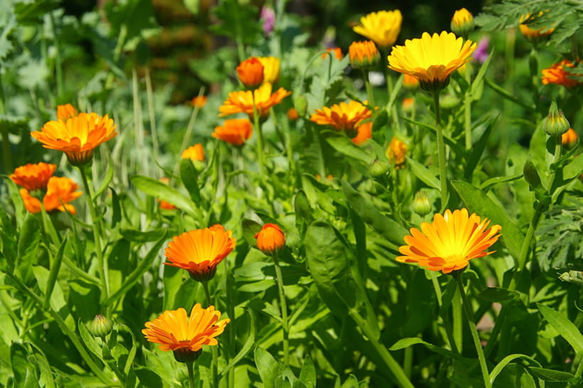 Le souci officinal, aux fleurs jaunes ou jaune-orangé est également appelé "safran du pauvre". En effet, son parfum proche de cette épice en fait un substitut. Les pétales peuvent également servir pour colorer un plat. Au potager, elles tuent les nématodes.