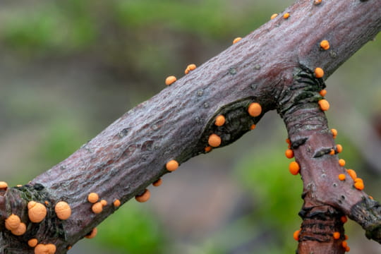 Dans un premier temps, vous pourrez observer un changement de teinte sur l'écorce de l'arbre et de fines craquelures. Un mois après, des pustules qui ressemblent à de petits coussinets orange prendront leurs quartiers sur l'arbre. Elles sont de forme sphérique, d'abord de couleur rouge, rose ou corail puis plus foncées. Elles peuvent parfois ressembler à des petites boules. À ce stade, la maladie est déjà infiltrée en profondeur dans votre végétal.