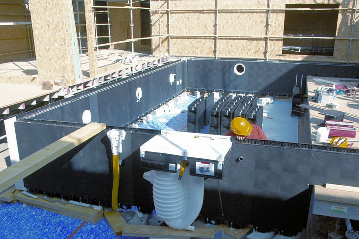 A travers le montage des modules, on obtient le cadre de la piscine.