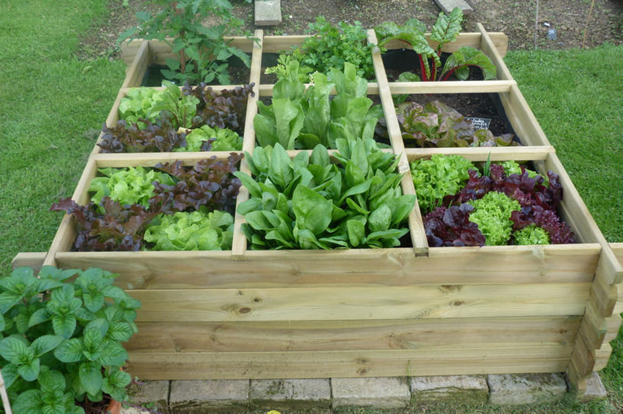 Dans les deux carrés qui composent son petit potager, Joëlle cultive différentes variétés de salades et d'herbes aromatiques, ainsi que des tomates.
