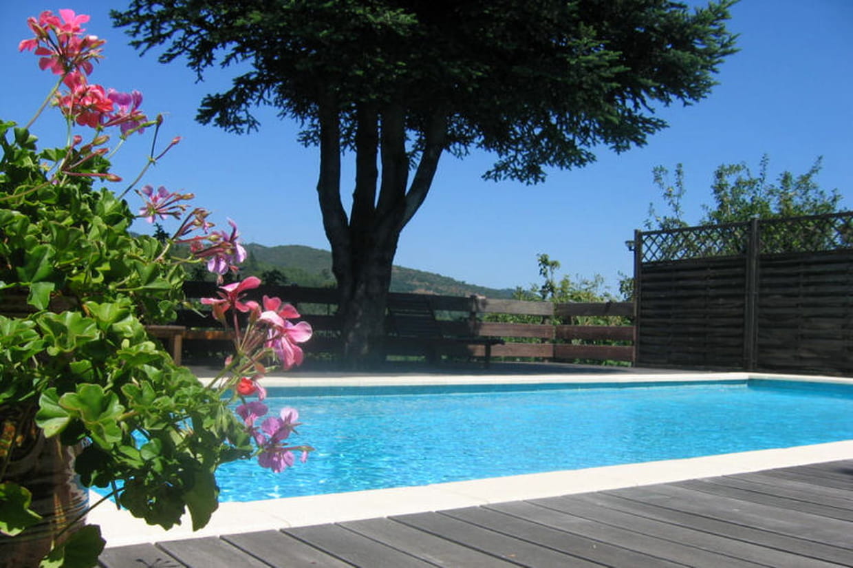 Construite en 1983 dans le Gard, cette piscine est entourée d'une terrasse en bois exotique de 70 m² aménagée par Dominique. En plus d'une magnifique vue sur la campagne, le cadre est composé d'un arbre imposant qui fait office de parasol quand le soleil tape trop fort.