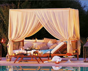 Adonnez-vous à la détente absolue grâce à cette alcôve qui confèrera à votre terrasse ou bord de piscine un côté oriental, digne d'un conte des mille et une nuits. Cette ligne au design unique associe le teck à la fibre WaProLace, ce qui rend l'assise très confortable. Etant articulée, vous pourrez la soulever du côté que vous voulez. Le tissu du voilage est en acrylique blanc écru.