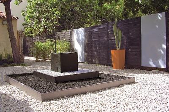 Si vous voulez être au top de la tendance, deux options s'offrent à vous. D'une part, le jardin design qui privilégie l'épure. Vous pouvez également opter pour le jardin japonais revisité avec des bassins carrés ou rectangulaires qui remplacent les bassins en forme de haricots devenus obsolètes. Le jardin star est graphique. Il présente des damiers qui mixent un matériau et un végétal comme ici par exemple.