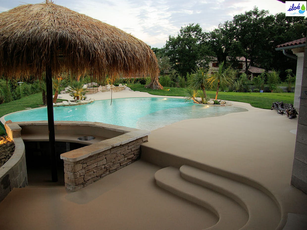 Le rendu est très naturel. Ce matériau permet d'épouser les formes du bassin et de créer une plage californienne, c'est-à-dire une pente douce pour rentrer dans l'eau. Il peut servir également de revêtement de terrasse : celle-ci prolonge ainsi la piscine de façon harmonieuse. Le paysagiste Expert Jardins Pascal Rodet, qui a eu l'occasion d'appliquer ce matériau chez des clients, explique que l'on peut aussi incruster des diodes. Ainsi, lorsque le micro-sable est appliqué en dernière couche, seules les LEDs apparaissent dans la nuit pour un effet d'éclairage époustouflant. Le concept Iléo a bien sûr un coût : pour 100 m² de plage de piscine, le panier moyen se situe entre 150 euros et 250 euros du mètre carré.