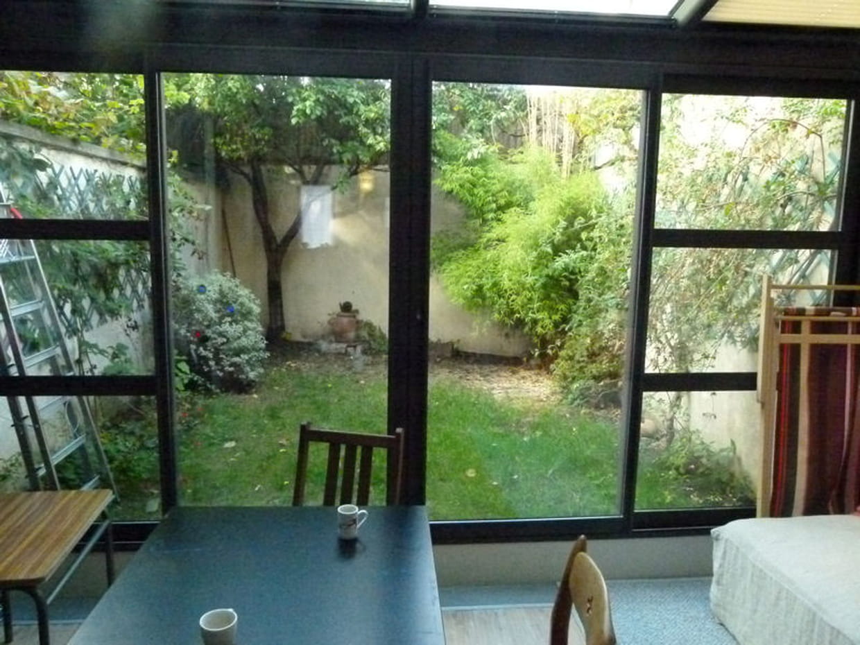 Avec une surface d'environ 17 m², ce jardinet de région parisienne était très peu exploité par ses propriétaires et laissait une bien triste image depuis la véranda qui permet d'y accéder. Entouré de trois murs, il est coincé entre plusieurs bâtiments. Mais, si ce petit espace vert se trouve à mi-ombre au niveau de la véranda, tout le fond du jardin se trouve bien exposé au soleil dans la journée. La durée d'ensoleillement est donc courte, mais intense. Au fond, à gauche, un prunier disproportionné par rapport à l'espace ne cessait de pousser. Il faut savoir que les pruniers n'aiment pas être taillés et sont donc inadaptés à la ville du fait de leur croissance qui ne peut être ralentie. Celui-ci a donc été retiré par l'agence Opus Paysage. A droite du prunier, le bambou a également été arraché.