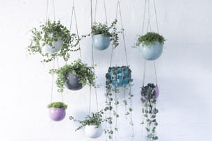 Suspension boule Kai de Truffaut, en céramique. Coloris bleu, beige, taupe ou rose © Truffaut