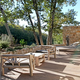 Afin de donner vie à un toit-terrasse design et chaleureux, sans pour autant dénaturer le paysage environnant, misez sur des meubles faits de matières naturelles : bois, pierre, osier, rotin, teck…  à l'image de ces beaux fauteuils en bois massifs signés Sempre.