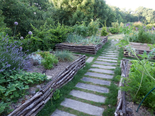 Il n'y a pas de règles à respecter quant à l'agencement : ces matériaux peuvent être disposés selon les goûts et les envies. Je pense toutefois qu'un jardin réussi est celui dont on ne soupçonne pas la main du jardinier qui l'a façonné. Ainsi, pour les traverses en bois, j'aurais tendance à privilégier un agencement linéaire plutôt qu'en quinconce, que je trouve sophistiqué.