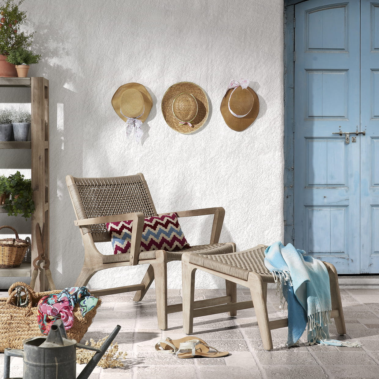 Pour l'été 2016, on file à l'anglaise direction… le soleil bien sûr ! Au jardin, en terrasse comme au bord de la piscine, cap sur des transats, chaises longues, chiliennes et autres banquettes capables de marier confort et outdoor, sans effort. Ambiance bohème un brin rétro chic sur la terrasse cet été avec Basneti, un duo fauteuil/repose-pied de charme. Fauteuil et repose-pied Basneti : 428 euros, chez KaveHome.