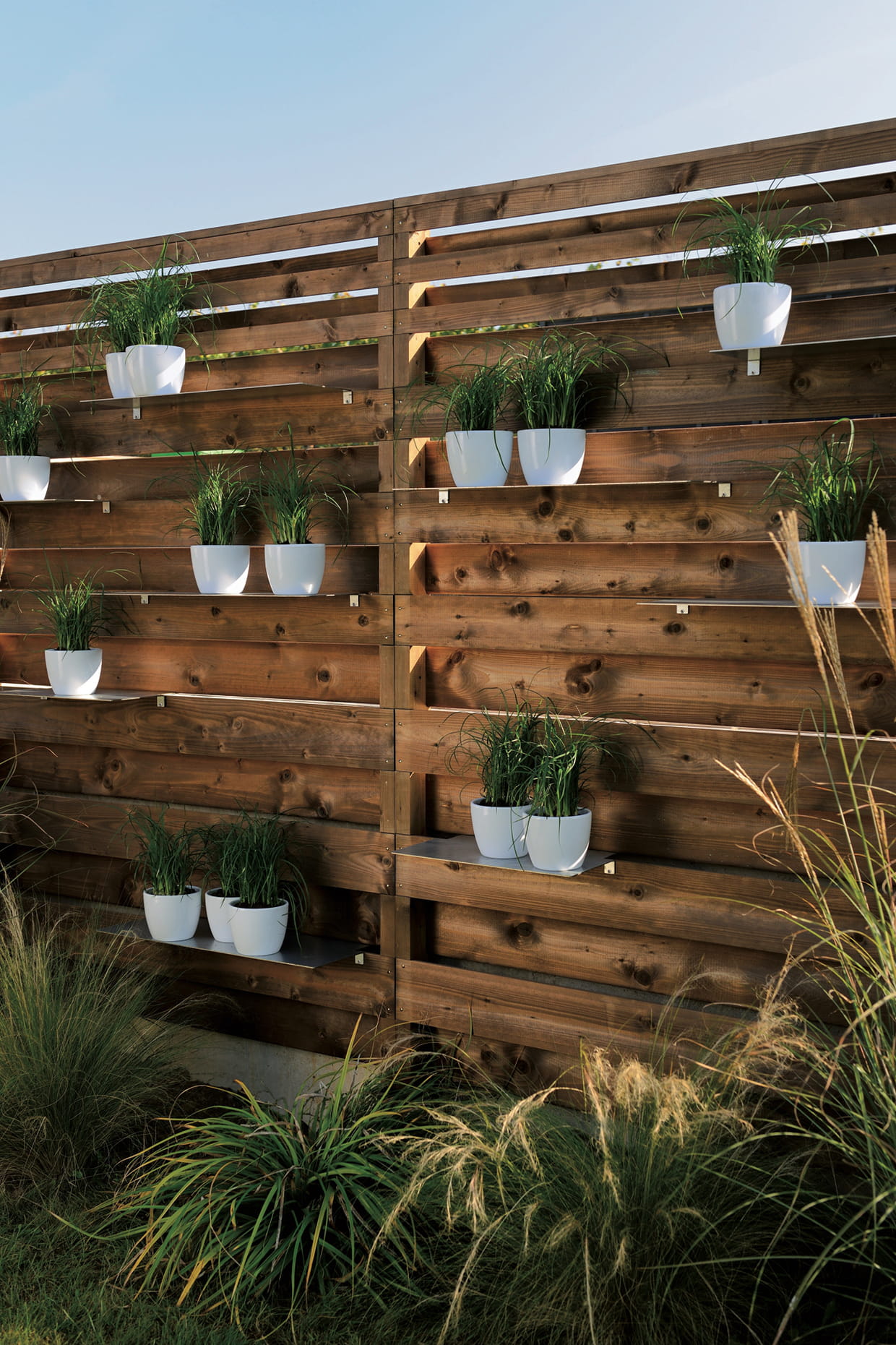 Malins ces panneaux deux-en-un qui permettent à la fois de s'isoler et d'exposer ses plus belles plantes. Panneau à moduler Lignb de Burger Jardipolys. Prix : 179 euros. Site : www.boutique.booa.fr