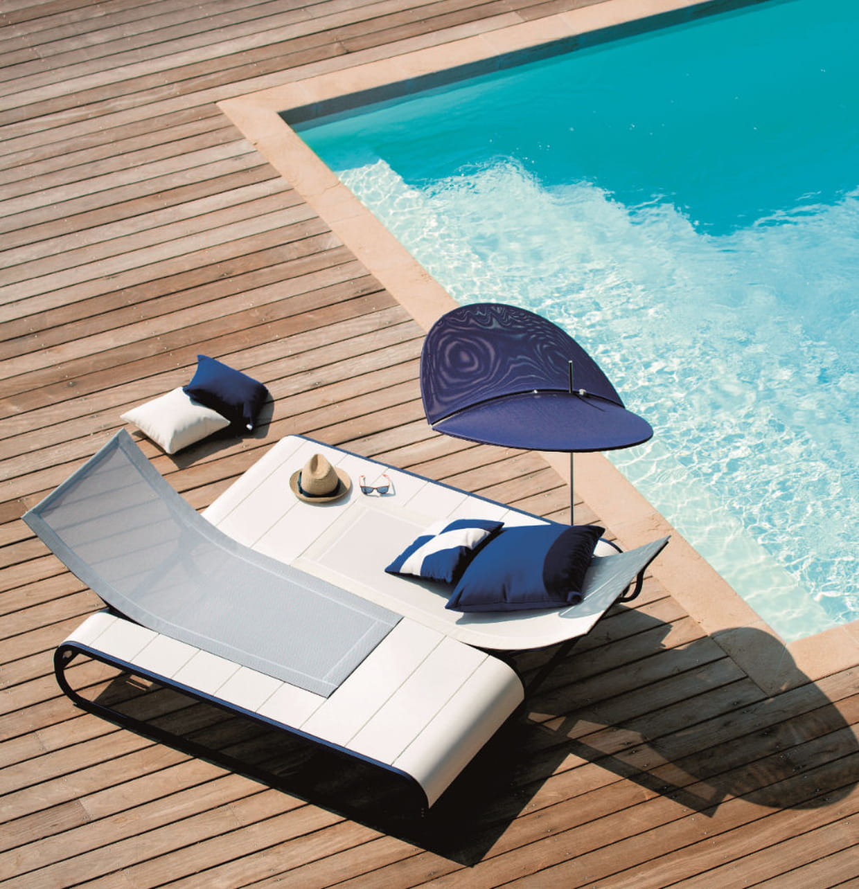 Bain de soleil duo habillé de Serge Ferrari Batyline, par Ego Paris. Prix : 3490 euros. Où l'acheter ? www.egoparis.com