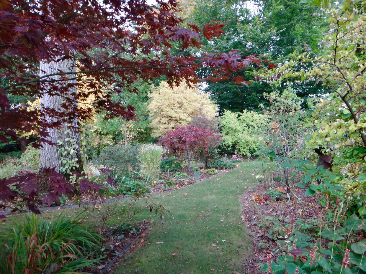 Au fond du jardin, on trouve près du sous-bois le carré des "allées sinueuses". Lui aussi bordé de rhododendrons, cet espace abrite également une serre qui sert de nurserie pour les nouveaux plants, afin qu'il puisse se développer avant d'être mis en pleine terre.
