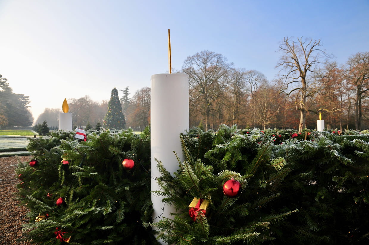 Agrémentés de bougies géantes, les buissons qui longent l'allée principale offrent une mise en scène lumineuse !