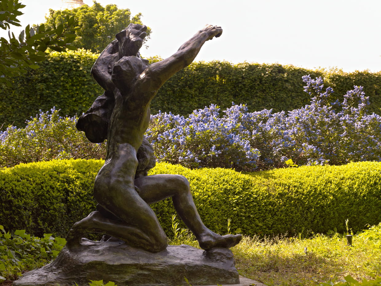 Dans les années 90, le paysagiste Sgard a aménagé le jardin d'Orphée. La sculpture s'installe ainsi au cœur d'un bosquet et se voit sublimée par des arbustes en fleurs qui se suivent tout au long de l'année comme cette belle collection d'hydrangeas.