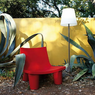 Voilà un fauteuil au design original qui ne manque pas de charme ! "Low Lita'' est l'oeuvre de la célèbre designer italienne Paola Navone qui l'a dessiné pour la marque Slide. Fabriqué en polyéthylène rotomoulé, ce fauteuil se distingue par ses pieds ronds imposants et la ligne fluide de son assise. Il existe en différents coloris : rouge, orange, vert, blanc... Conçu pour résister aux intempéries et doté d'un trou d'évacuation d'eau, il est idéal pour l'extérieur. Il est assez léger et peut se poser aussi bien sur l'herbe du jardin que sur une plage de piscine ou une terrasse. En tout cas, nous, c'est son petit côté contemporain stylé "retour en enfance" et ses couleurs acidulées qui nous ont faits craquer !