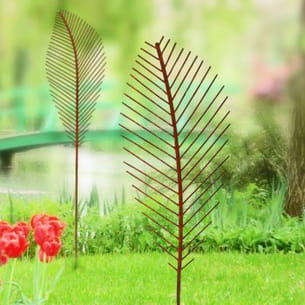 Clématites, chèvrefeuilles, glycines... vont adorer venir grimper sur ces tuteurs décoratifs de Jardins animés. Ces feuilles fougère seront du plus bel effet plantées dans votre jardin ou accrochées comme élément de décoration sur le mur de votre maison. Fabriquées en métal rouillé, elles créent un décor zen et original par leur aspect graphique et épuré. Les nervures de ces feuilles sont suffisamment rapprochées pour apporter un maximum de soutien aux plantes grimpantes. On adore !