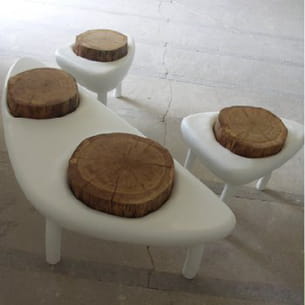 Lors de la manifestation Jardins, Jardin aux Tuileries, nous étions tombées sous le charme de ces créations des sculpteurs et designers bourguignons, Ingrid Michel et Frédéric Pain. Le banc comme les deux tabourets sont en résine et disposent de rondins en bois de chêne qui peuvent se retirer pour l'entretien. Ce mobilier aux formes sensuelles a un petit côté rétro qui n'est pas pour nous déplaire. Il peut être réalisé, à la demande, dans le coloris et la taille de son choix.