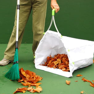 Voici un outil très discret, design, innovant et astucieux pour ramasser feuilles, déchets verts et détritus plus facilement. Son original système de fixation lui permet de s'adapter à tous types de sacs. Equipé d'un sac en polypropylène tissé déjà monté, ce ramasse-feuille permet un ramassage rapide, donc utile pour les grands jardins, s'adapte à tous les types de sacs et évite de vous courber pour la corvée des feuilles. Très mince, il se range en outre très facilement.