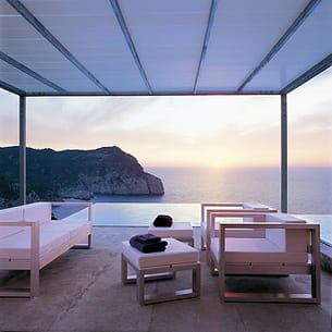 Ses lignes pures semblent avoir été créées pour s'insérer dans la beauté du paysage. Constituée de métal et de plastique, la structure est en aluminium anodisé et l'assise en polyéthylène. Un ensemble idéal pour les amoureux de lignes brutes et géométriques.