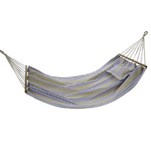 Ce hamac très large et au look rétro conviendra parfaitement aux tonnelles ombragées. Un petit coussin est intégré afin de garantir le confort de l'utilisateur et promet des siestes à rallonge... Le hamac est livré dans un petit sac petit et compact transportable partout... même en vacances !