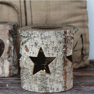 Creusée à même le bois, cette lanterne arbore fièrement l'un des symboles des fêtes de fin d'année, l'étoile. Son apparence rustique et chaleureuse s'accompagne d'un esprit "hiver" qui s'accordera avec un jardin enneigé. Sous le porche, sur la table de jardin ou au bord de la fenêtre, elle se fera discrète et élégante.