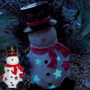 Au beau milieu du jardin, sur le balcon ou le rebord d'une fenêtre, ce petit personnage de saison se pose partout. Le jour, il s'agit d'un bonhomme de neige à l'air jovial, tandis que la nuit, il s'illumine de belles étoiles bleues. Il n'a besoin ni de branchement, ni d'interrupteur puisque c'est son panneau solaire qui lui fournit l'énergie nécessaire.