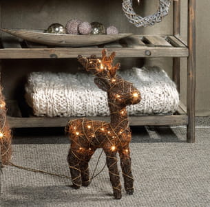 Ce petit renne lumineux n'est pas conçu pour l'extérieur, pourtant, placé derrière la vitre d'une fenêtre ou d'une véranda, il accentuera le décor de votre jardin. Sa douce lueur et sa jolie forme le feront devenir un rassurant personnage veillant à l'arrivée du Père Noël.