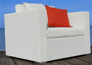 Ce fauteuil en textilène a des lignes rigoureusement droites. Sur une terrasse ou dans un jardin, il s'adapte à vos envies. Monté sur une structure en aluminium, ce fauteuil est tout simplement aérien ! Il existe en noir et en blanc. Son style contemporain donnera un côté chic à votre salon extérieur. Il existe également dans la même gamme un canapé et une table basse.