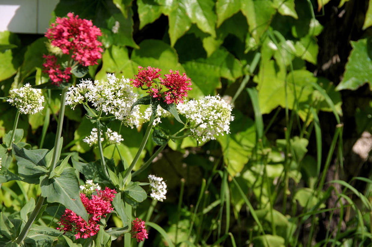 Parmi les fleurs du jardin d'Annie, on compte aussi des valérianes rouges et blanches.