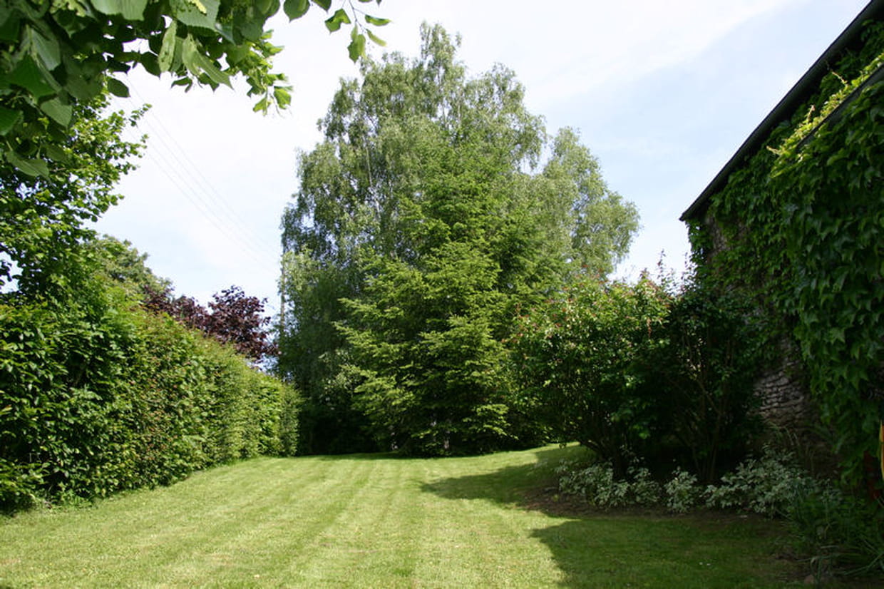 Les nombreux arbres et buis protègent le terrain des regards curieux.