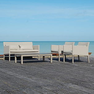 Même si le salon Trendy Pink semble devoir prendre sa place dans une salle de séjour, il n'en est rien. Sa structure en aluminium et son revêtement en textilène sont conçus pour embellir votre jardin. Avec leurs couleurs sobres et leurs formes contemporaines, banquette, table basse et fauteuils peuvent s'installer sur une terrasse, où ils feront sensation.