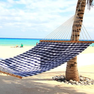 Hästens, célèbre marque suédoise de literie de luxe, offre aux amateurs de soleil un hamac à ses couleurs. Pour vous plonger dans les fastes de la sieste, le hamac Hästens mise sur une toile de qualité et un confort qui ont fait la réputation de la marque. Le tout décoré d'un vichy bleu marine, l'emblème du créateur de couchages au naturel.