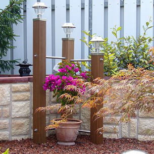 Ces trois lampes, montées sur une armature en bois et acier, pourraient dépenser beaucoup d'électricité pour éclairer le jardin de nuit. Or, elles sont équipées de déflecteurs solaires qui rechargent la batterie dans la journée.
