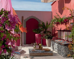 Comment transformer une cour sans âme en un véritable espace de détente ? On opte pour ce kit avec structure en mailles métalliques à remplir de galets ou de rondins de bois. On y dispose ensuite des coussins plats pour obtenir une banquette des plus originales. Existe aussi pour la table basse.