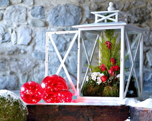 L'hiver apporte avec lui son lot de bouleversements et l'éclairage déclinant tôt en soirée en fait partie intégrante. Pour sublimer cet effet nuit hivernale précoce, le nec plus ultra de la déco est la lanterne. Placée sur des marches en bois ou suspendue à un arbre du jardin, elle révèle au passant un extérieur plein de charme et de chaleur.