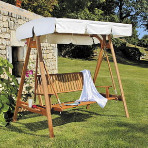 Se laisser emporter par le sommeil sur cette balancelle qui vous rappellera les forêts d'eucalyptus, quoi de plus agréable ? Relaxez-vous et laissez votre esprit s'évader. Tout seul ou jusqu'à trois, prenez place sur cette balancelle en eucalyptus FSC coiffée d'une belle toile de couleur écru.