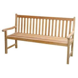 Ce banc peut idéalement s'associer avec la table basse Alizé. Il est également fabriqué en teck labellisé et constitue une invitation à prendre le temps de se poser en regardant son jardin.