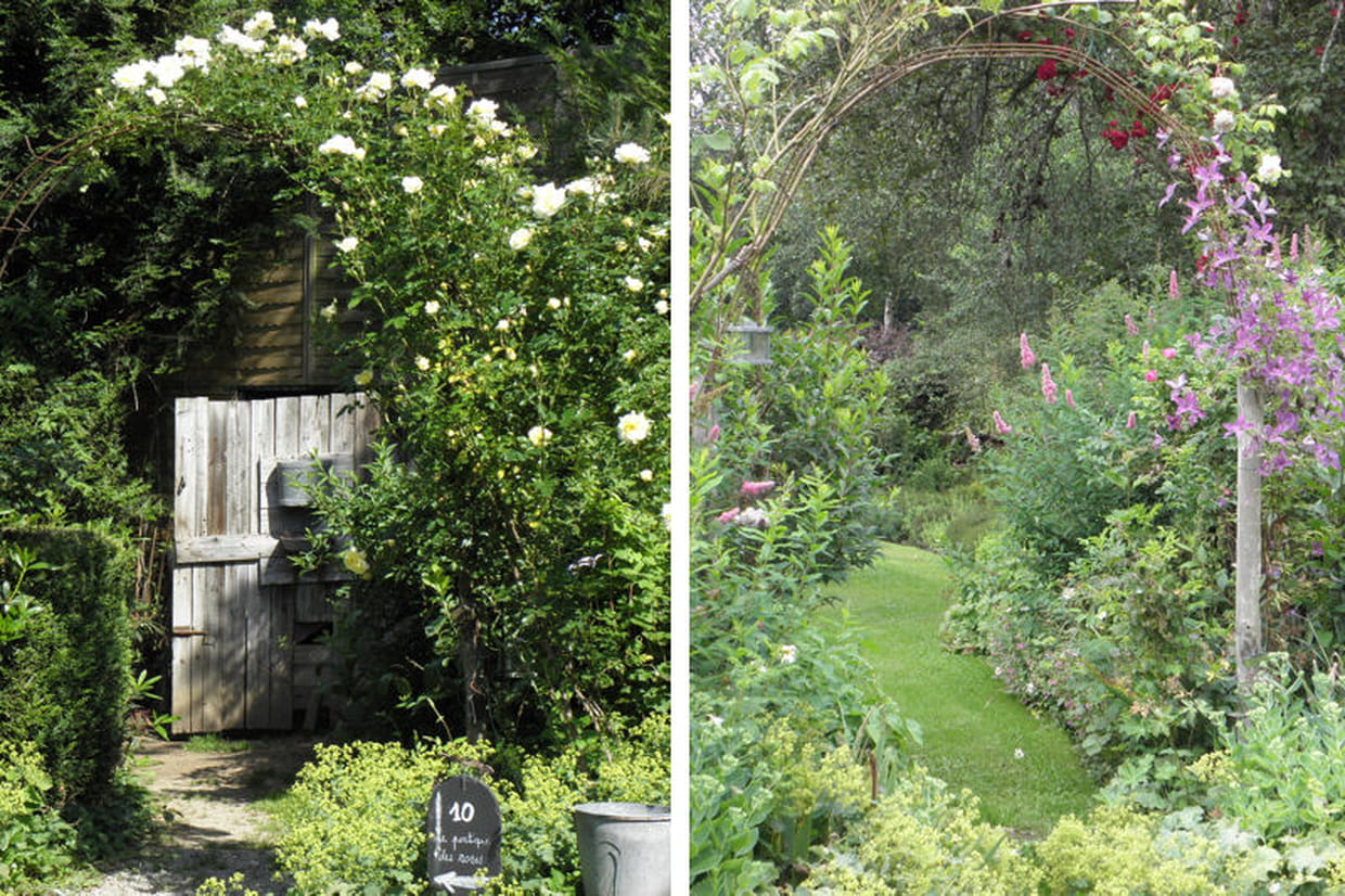 "Les passages d'une zone à l'autre du jardin sont traités en douceur par des voûtes fleuries," explique Geneviève. Les plantes grimpantes y sont reines.