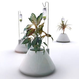 Voici le très original IV Plant Pot qui peut faire office de cache-pot. Au premier abord, il peut surprendre avec son goutte-à-goutte médical. Il dispose également d'un régulateur de débit, très utile pour ceux qui ne pensent pas forcément à l'arrosage de leur plante, et d'un système d'alerte au cas où vous l'oublieriez. La plante est ainsi alimentée en continu avec de l'eau ou de l'engrais, très pratique quand on part en vacances ou qu'on n'a pas forcément la main verte.
