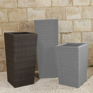 La résine est une matière très tendance côté meubles d'extérieur. Celles et ceux qui cherchent donc un cache-pot en harmonie avec leur mobilier, la collection de Flower Pot d'Oceo  vous propose ses cache-pots en résine tressée couleur chocolat.