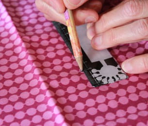 Maintenant que nous avons tout sous la main, il est grand temps de nous mettre à l'ouvrage. Pour notre part, nous avons opté pour un tissu dans un style très seventies. Nous avons été séduites par ce tissu rose framboise ultra flashy imprimé de ronds de couleur rose qui correspond parfaitement à la tendance color block. Il faut tout d'abord réaliser une bande de tissu de 40 cm sur 20 cm qui va servir à recouvrir le bas du pot de fleurs puis une deuxième bande de 40 cm sur 5 cm. Prenez votre règle et votre crayon à papier afin de délimiter les zones à découper.