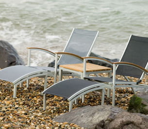 Cette chaise longue "serpens" de la collection Triniti est constituée de deux parties distinctes qui peuvent s'éloigner ou se rapprocher selon ses envies. Et pour plus de positions possibles cette chaise est équipée d'un système multi- positions qui permet d'infinies inclinaisons puisqu'il est composé d'un rail coulissant blocable à volonté.