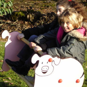 De quoi vous replonger vous aussi dans votre enfance ! Ce jeu sur ressorts deux places est spécialement traité pour résister à tout ou presque à l'extérieur. Un petit tour sur les ces deux charmants petits cochons ?