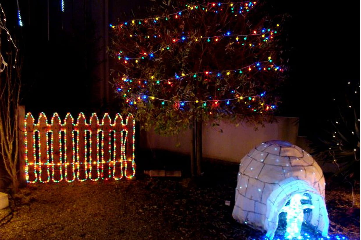 Thierry n'hésite pas non plus à illuminer les végétaux de son jardin. Ainsi, il a installé deux guirlandes multicolores de 200 lampes dans son saule crevette.