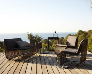 AM.PM. propose pour notre terrasse du mobilier contemporain aux influences venues d'ailleurs. Voici le salon d'extérieur Sirena qui présente de jolies formes, à la fois généreuses et légères pour des après-midis de relaxation sous le soleil.