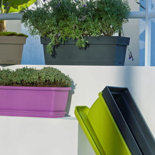 • Caractéristiques : une jardinière en polyprolène avec soucoupe intégrée pour réserve d'eau. Existe en plusieurs coloris.