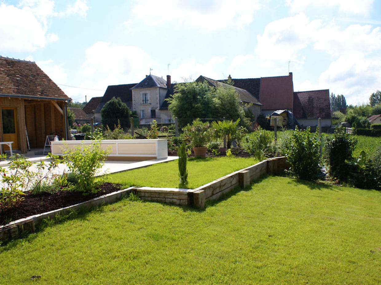 En Sologne, près de Blois, le paysagiste Expert Jardins Hervé Lecomte a dessiné et conçu ce jardin d'environ 2 000 m², jusqu'à présent un peu délaissé du fait de la rénovation de la maison qu'il entoure, une ancienne ferme. Les souhaits du propriétaire étaient simples : il voulait un jardin facile à entretenir et mettant en valeur la richesse du patrimoine immobilier de sa propriété. Cette réalisation atteste de l'engouement des Français pour le jardin qui font de plus en plus appel aux pros : selon une récente étude*, la dépense des Français en matière d'entretien et de création d'espaces verts par des prestataires externes s'élève à 2,1 milliards d'euros en 2012. (*Chiffres clés Unep ? les entreprises du paysage 2013)
