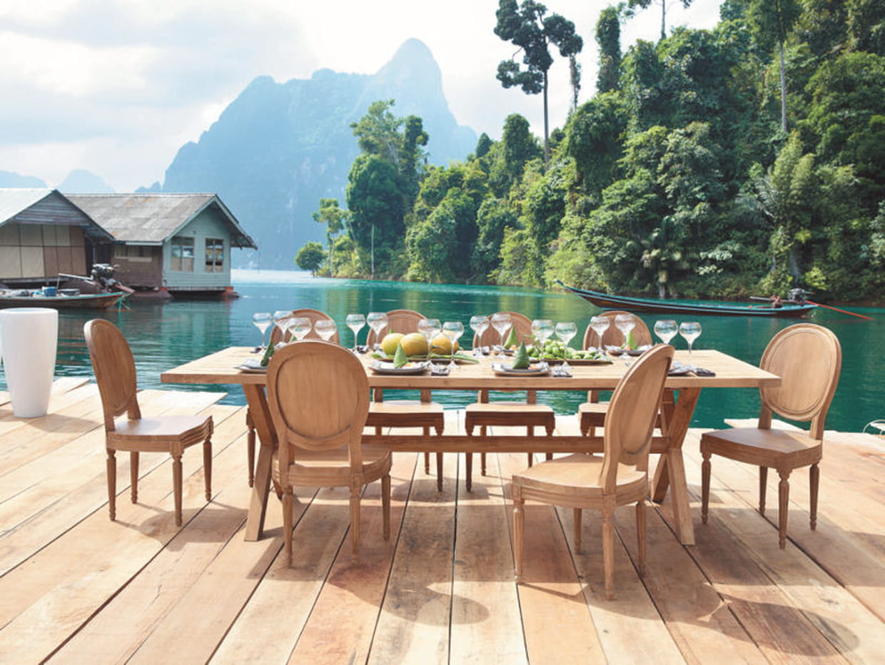 Exit les tables qu'on colle les unes aux autres tant bien que mal pour faire tenir toute la tribu. Maisons du Monde propose une table à manger en teck massif naturel. Elle mesure jusqu'à 2,60 mètres de long et peut accueillir de nombreux convives. Associée à des chaises en bois reprenant le style Louis XVI, elle compose une salle à manger extérieure qui a de l'allure. Prix : à partir de 599,90 euros la table à manger Guernesey et 199,90 euros la chaise Louis.