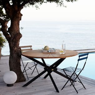 Cette table de jardin en acacia est faite d'un bois solide qui résiste aux UV et aux intempéries. Ronde et en teck, elle apporte un véritable "plus" déco au jardin.