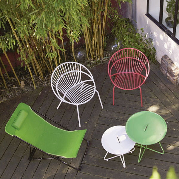 Le mobilier outdoor se fait tout en rondeur chez Castorama. Nous, on aime beaucoup la table d'appoint verte à poignée : facile à déplacer sur la terrasse.